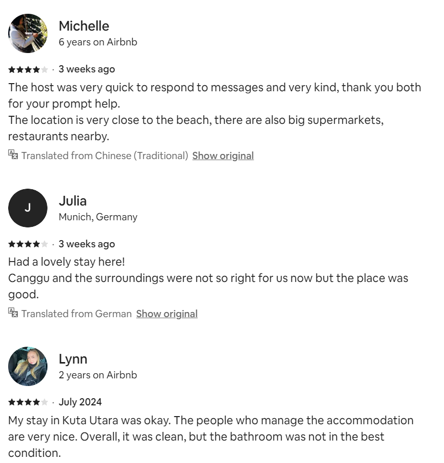 These are reviews that we copied from this property page. To read all the reviews go to the Airbnb page.