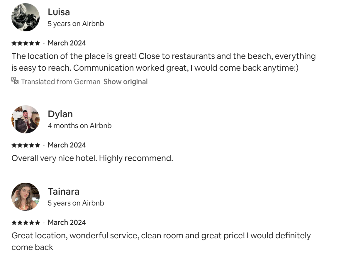 These are reviews that we copied from this property page. To read all the reviews go to the Airbnb page.