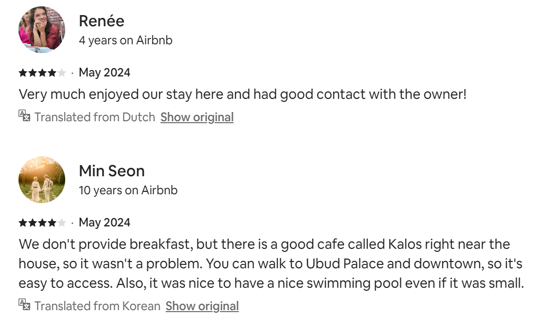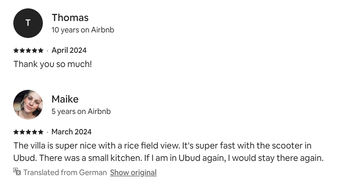 Please be informed this is a house in the tropic near the rice field. That means different insects, especially ants and moths, may easily and fast appear. We provide regular and thorough cleaning but you need to understand that ants can appear within a few minutes. In such cases, please use repellent (we have it in the kitchen) or contact us for extra cleaning.