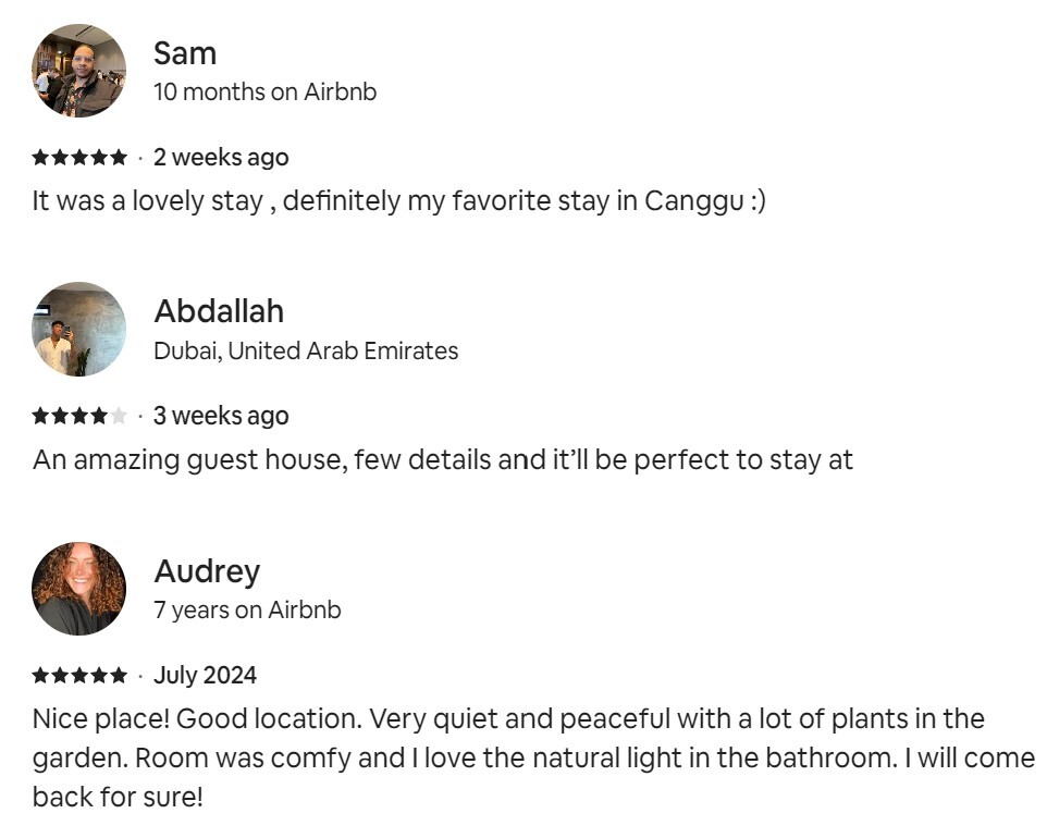 These are reviews that we copied from this property page. To read all the reviews go to the Airbnb page.