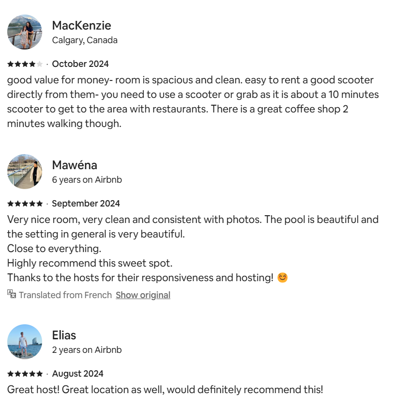 These are reviews that we copied from this property page. To read all the reviews go to the Airbnb page.