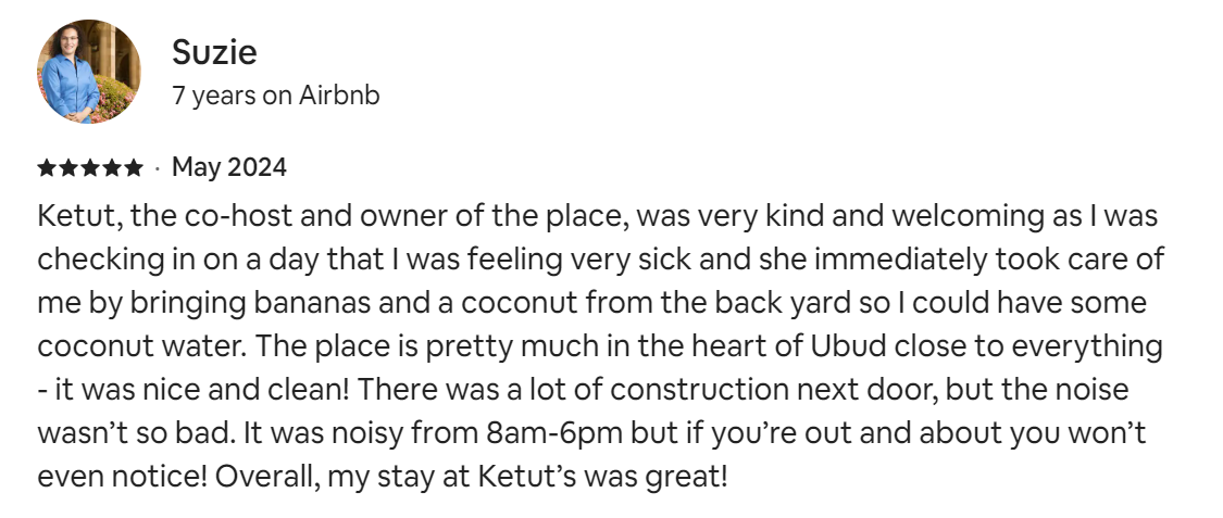 Bali is experiencing an investment and building boom and there are a few buildings around that are ongoing. That means you can hear the noise during the daytime (until sunset).