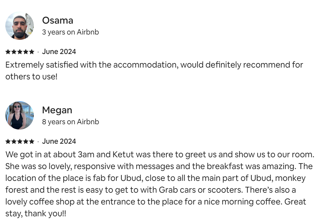 These are reviews that we copied from this property page. To read all the reviews go to the Airbnb page.
