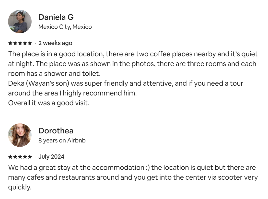 Please be informed that in the tropical climate of Bali the ants can appear in minutes even in the cleanest and most well-maintained houses and we can't promise that you will not meet them. If you will face with this such a case inform us and we will make an additional cleaning as fast as we can.