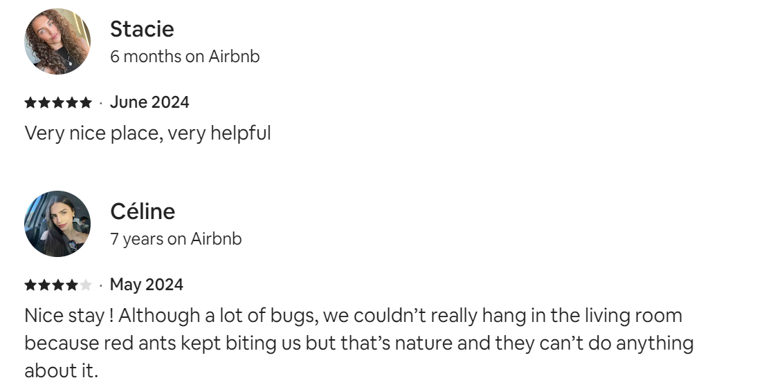 Please be informed that in the tropical climate of Bali the ants can appear in minutes even in the cleanest and most well-maintained houses and we can't promise that you will not meet them. If you will face with this such a case inform us and we will make an additional cleaning as fast as we can.