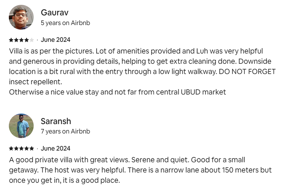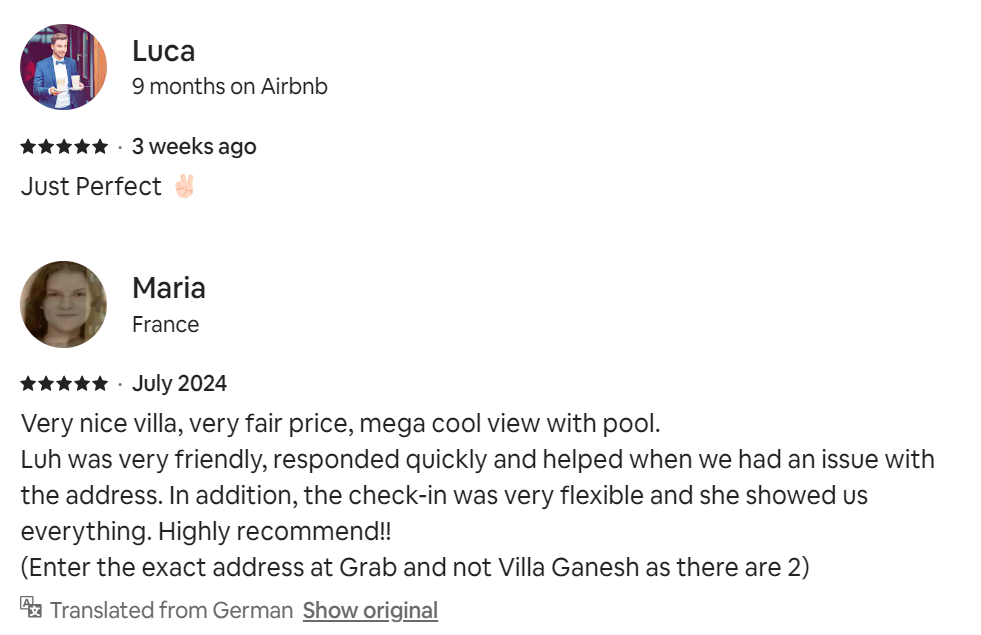 These are reviews that we copied from this property page. To read all the reviews go to the Airbnb page.
