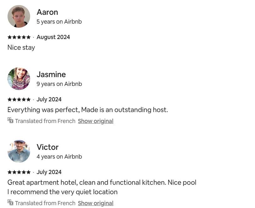 These are reviews that we copied from this property page. To read all the reviews go to the Airbnb page.