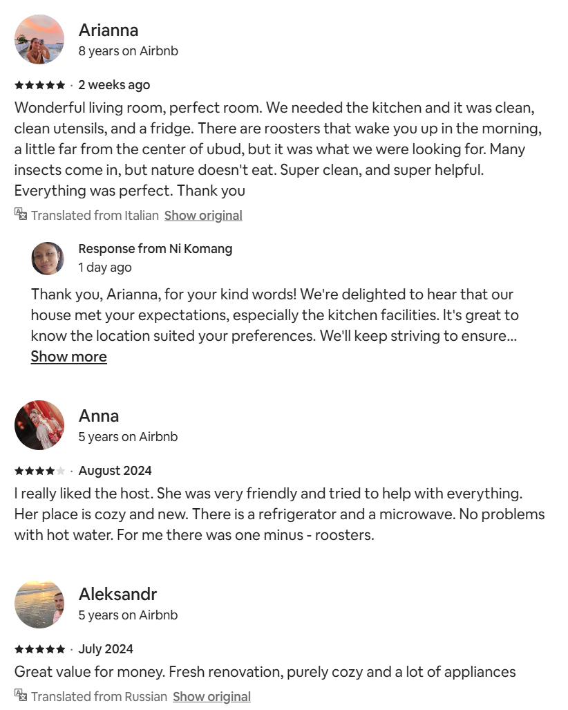 These are reviews that we copied from this property page. To read all the reviews go to the Airbnb page.