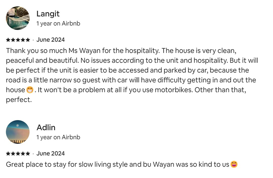 Please be informed that in the tropical climate of Bali the ants can appear in minutes even in the cleanest and most well-maintained houses and we can't promise that you will not meet them. If you will face with this such a case inform us and we will make an additional cleaning as fast as we can.