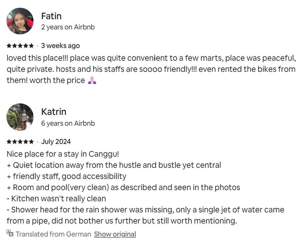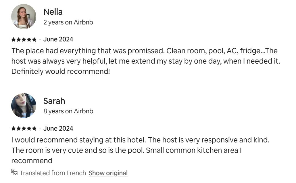These are reviews that we copied from this property page. To read all the reviews go to the Airbnb page.